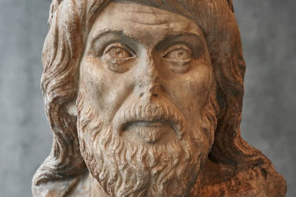 Plutarque (46-125) a consacré à cette question un texte alerte et profond, De l’E de Delphesi. Il offre une mine de notations piquantes sur la vie intellectuelle dans la Grèce d’alors, et il se conclut, comme on va voir dans un instant, par une idée ouvrant une géniale perspective de réflexion, — dont les théologies des monothéismes actuels feraient bien de s’inspirer…